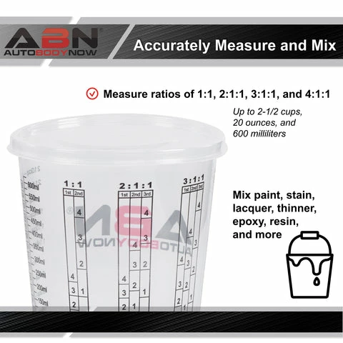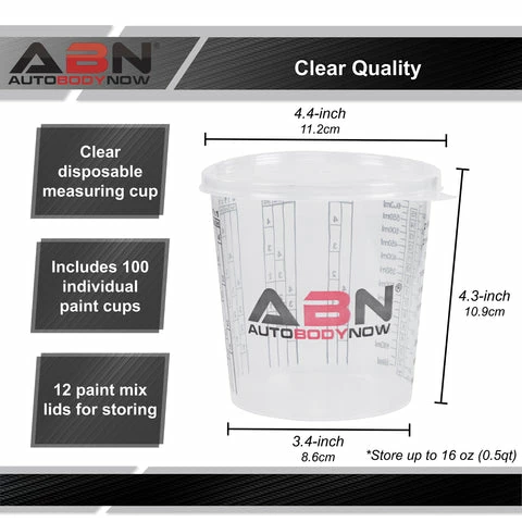 - [Compatible]: Resistant to solvents; Used with PPG, DuPont, SW, Glasurit, and more; Comes with 12 clear plastic paint mixing cup 16oz ounce (473mL) lids