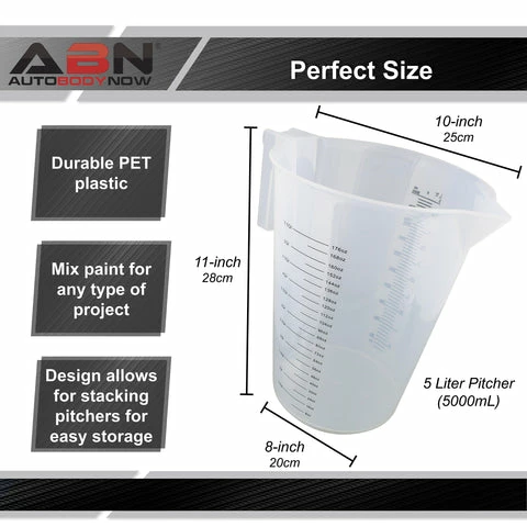 - [Mix with Confidence]: When it comes to mixing paints for woodworking, metalworking, and other projects, depend on the ABN 5 Liter Pouring Pitcher to get the job done right; Package includes (3) 5L (1.3 gallons) graduated pitchers for your paint work