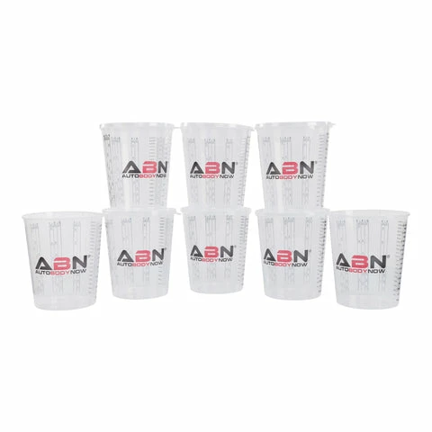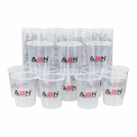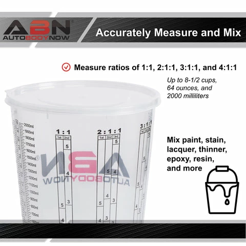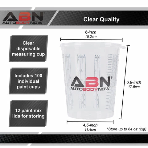 - [Fill, Stir, and Pour]: Measure, mix, and pour paint with the ABN 100 Pack Plastic Measuring Cups for Liquids; 12 plastic paint mixing cup lids allow you to even store 64 ounces (2qt) of paint easily